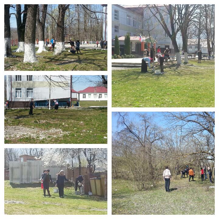 Члены клуба " Ахмат" и детско-юношеской организации"Юные кадыровцы"приняли активное участие в общешкольном субботнике