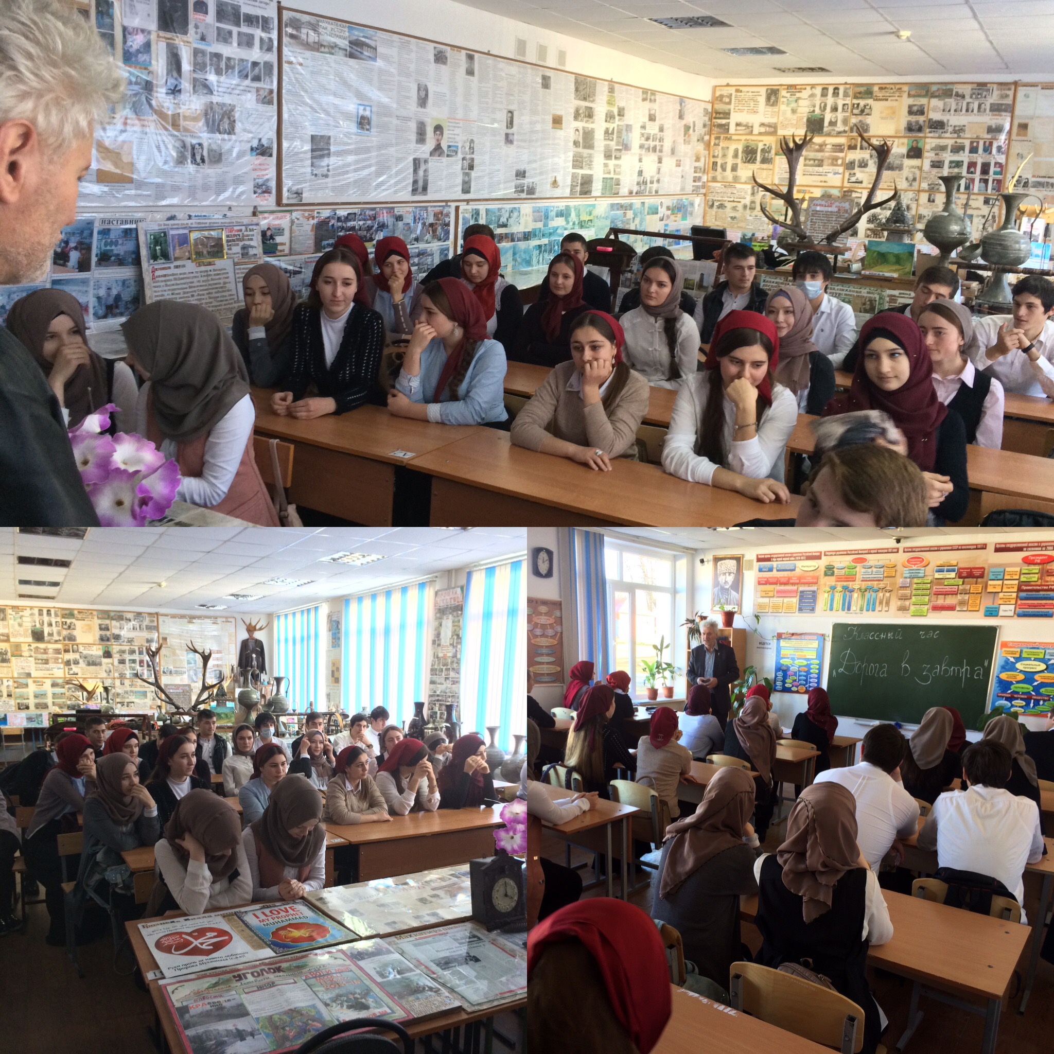 24.11.201624 Ноября в нашей школе в 11-х классах состоялся открытый классный час на тему "Дорога в завтра". В нем активно принял участие, известный писатель Нунуев Саид-Хамзат Махмудович Целью было: