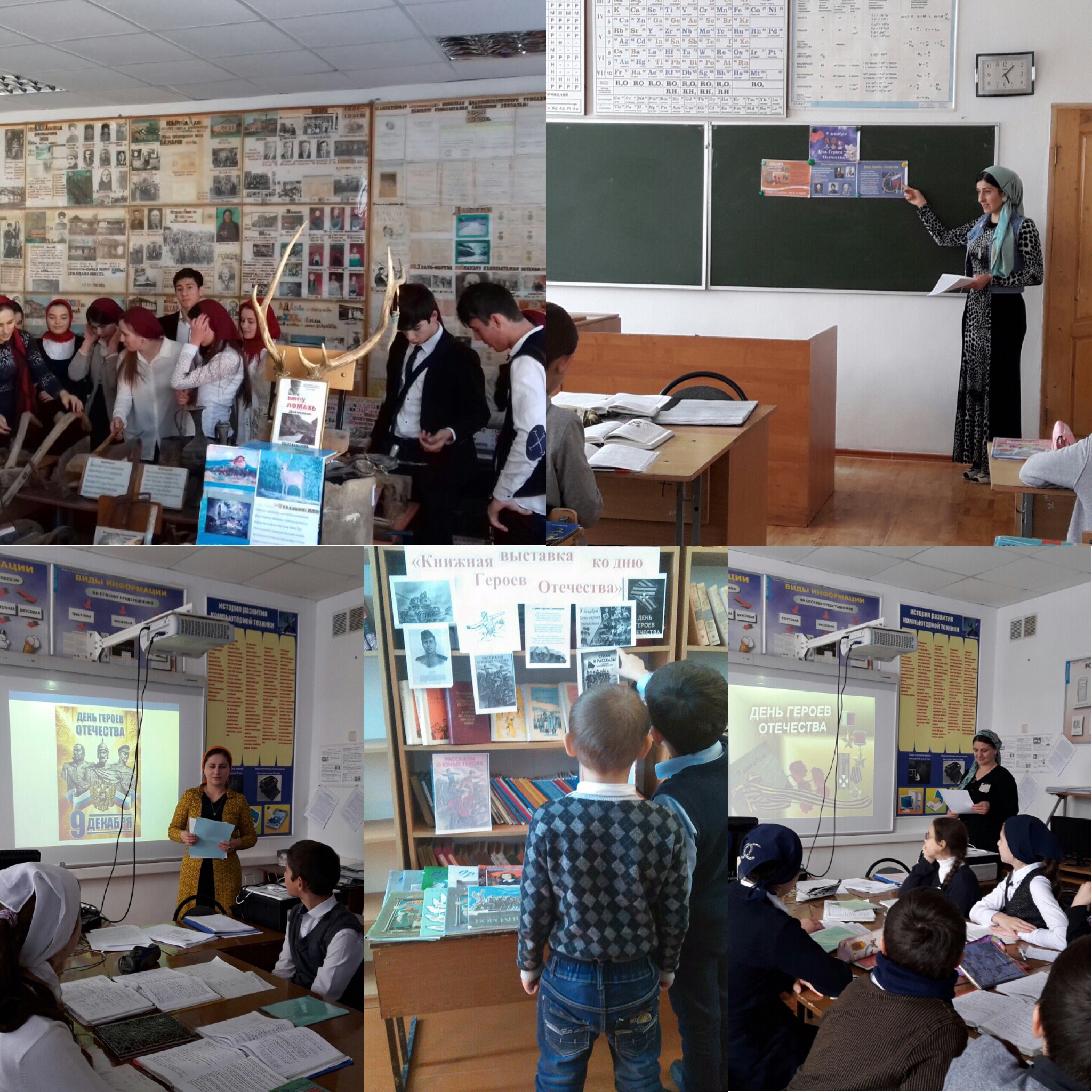 В нашей школе, провели работы прирученные к Дню Героев Отечества. Во всех классах проведены классные часы, выпустили к этой дате стенгазету, оформлена выставка в библиотеке школы, учащиеся посетили школьный музей.