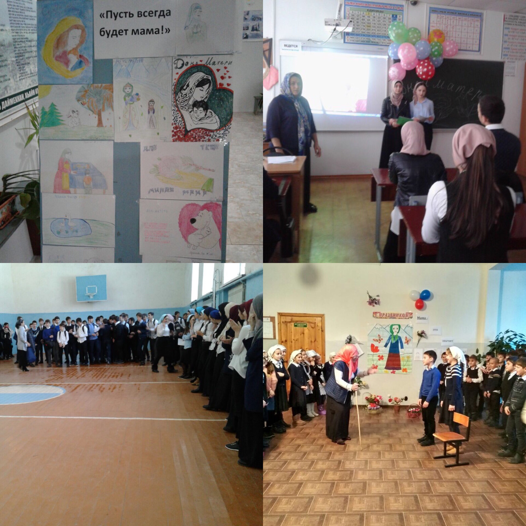 20.11.2017С 1 по 28 ноября в рамках проведения месячника, посвящённого Дню матери с целью бережного отношения к женщине, укрепления семьи. В соответствии с районным планом мероприятий, приуроченных ко Дню матери, в школе был разработан план внутри школьных мероприятий. С 1 по 25 ноября прошла выставка детского творчества: «Нашим мамам – ласковым и нежным самым», в ней приняли участие все желающие. Учащиеся приняли активное участие в изготовлении поздравительных открыток для своих мам. Самыми активными были учащиеся 1, 2,5-го класса, они больше всех продемонстрировали рисунки своих мам и бабушек.. С 24 ноября во всех классах прошёл Единый классный час: «Загляните в мамины глаза» 28 ноября в школе состоялся праздничная линейка для мам, бабушек: «Добрая милая мама». В линейке приняли участие учащиеся 1-10 классов ребята рассказывали стихотворения, пели песни, танцевали, исполняли шуточные сценки. В процессе проведения всех мероприятий ребята активно участвовали во всех проводимых мероприятиях. Учащиеся 1-11 классов поздравили своих мам с праздником. Большую помощь в подготовке мероприятий оказывали работники «Дома культуры» а также классные руководители. Все запланированные мероприятия прошли на высоко организованном уровне и имели массовый характер.