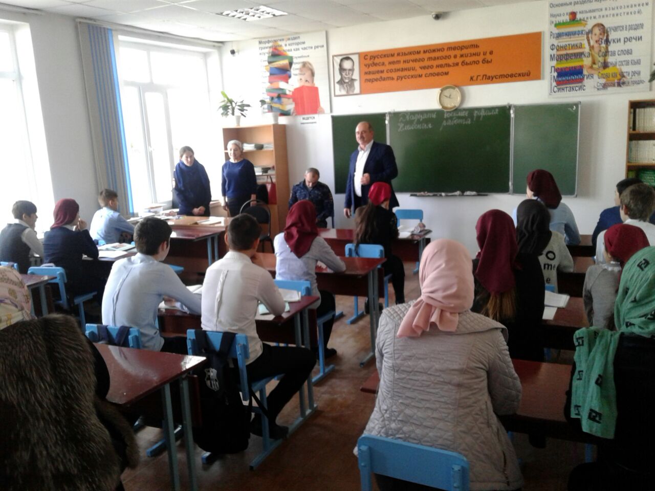 01.03.2018С целью профилактики преступности в молодежной среде, а также других правонарушений и преступлений, совершаемых несовершеннолетними, 1 марта в нашей школе была организована встреча учащихся 9-11 классов и их родителей с инспектором по делам несовершеннолетних Хабусиевой Т. В беседе освещались вопросы об административной и уголовной ответственности несовершеннолетних за совершение преступлений и правонарушений, о коррупции, а также, о правилах поведения детей. Она давала советы, как вести себя в трудной жизненной ситуации, куда обращаться. Беседа основывалась на конкретных примерах и фактах из профессиональной деятельности инспектора. Учащиеся и родители принимали активное участие в беседе, задавали много интересующих их вопросов, рассказывали о своих проблемах.